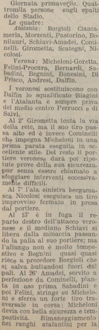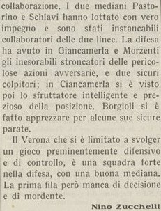 Dopo la sconfitta di Siena un brutto pareggio interno con il Verona, il gioco viene definito “scarso”, per il momento però siamo sempre tra primo e secondo posto quindi posizioni sufficienti per la promozione.