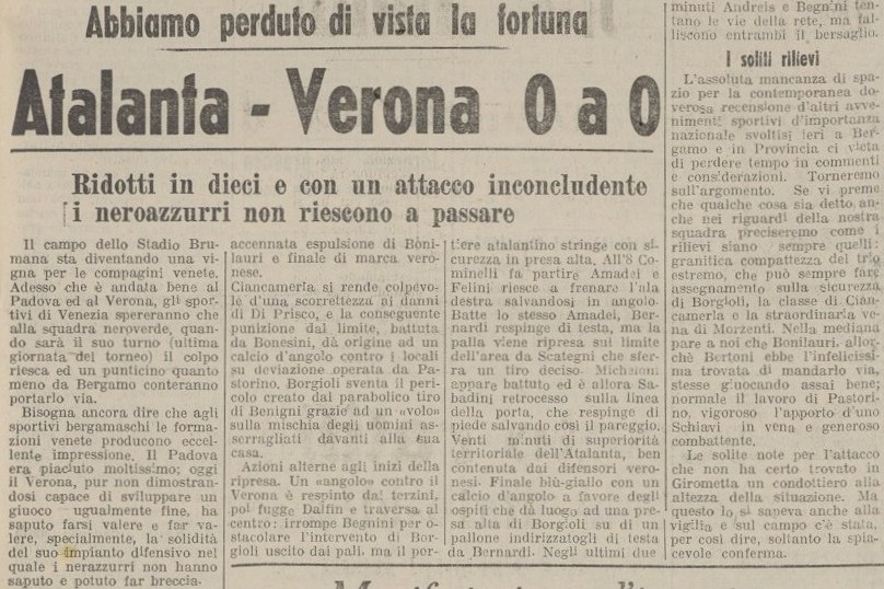 A fine partita alcuni nerazzurri ci tengono a dire qualcosa all’arbitro e Morzenti si becca due giornate di squalifica pur avendo concluso regolarmente la partita.