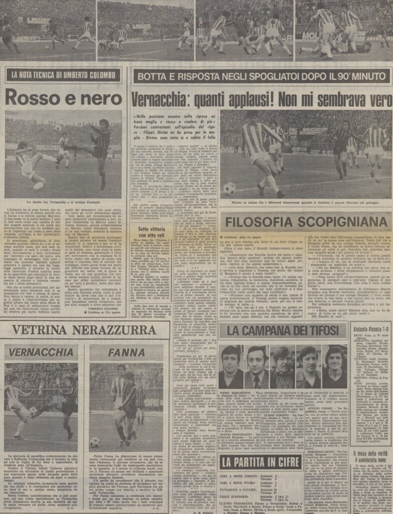 Nel primo tempo azioni alterne, nei vicentini tutti i pericoli vengono dal futuro capitano romanista Di Bartolomei, Vernacchia e Scala imperversano invece sull’altro fronte.