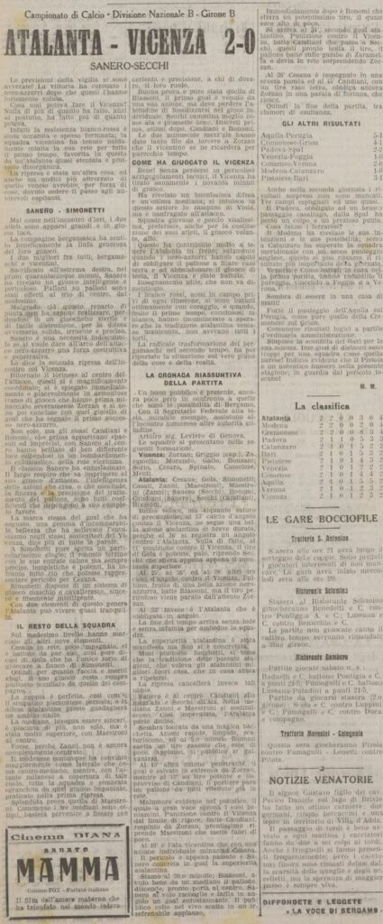 Con il Vicenza finisce 2-0, segnano nel secondo tempo Sanero, con un tiro al volo, e Secchi su assist di Candiani, ma i gol potevano esser anche di più.