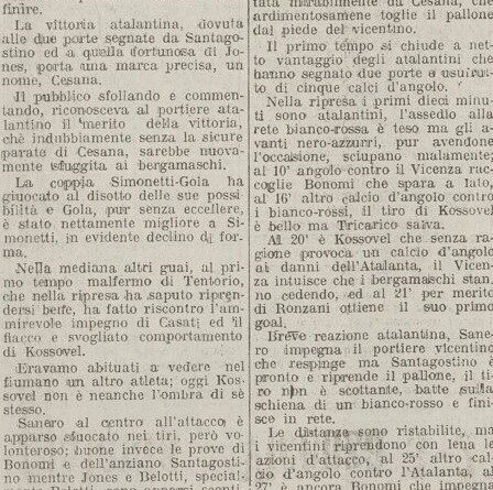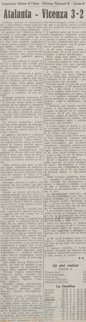 La partita viene giudicata deludente, secondo l’articolista la vinciamo grazie al portiere e a un gol fortunoso, l’ambiente è rimasto male pensava di poter lottare per la promozione fino all’ultimo.