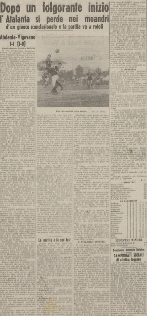 L’Atalanta dura un quarto d’ora poi ci spegniamo, l’arbitraggio peraltro è pessimo, ai granata vigevanesi (con maglia peraltro molto simile al Brescia) viene concesso pure un rigore ma tirato fuori.