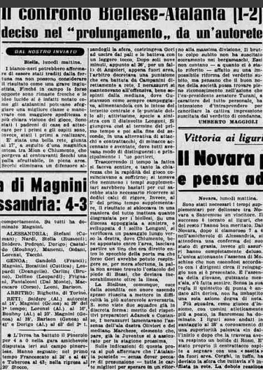 Per alcuni è stato Chiumiento, per altri Mion, per altri ancora un’autorete, dalla cronaca de “La Stampa” è un tiro di Chiumento deviato da un difensore.
