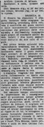 Ci sono anche due espulsi, il bresciano Perazzolo che viene descritto dall’articolo come un provocatore ben conosciuto e l’atalantino Del Medico che non si tira indietro.