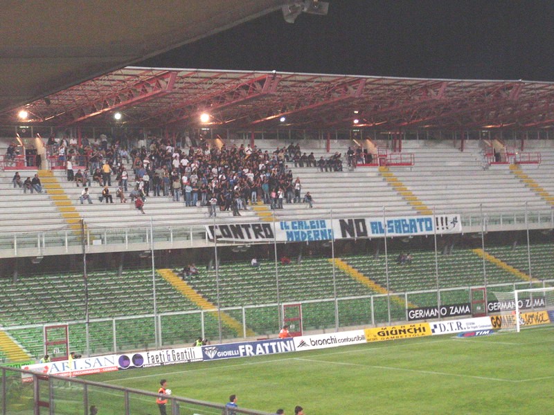 Gli ultras atalantini al seguito proseguono la protesta contro la Serie B al sabato pomeriggio.