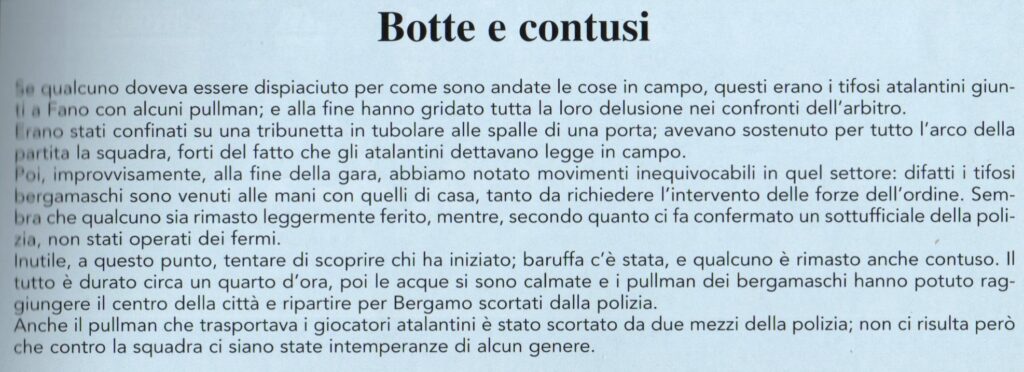 Anche fuori dal campo giornata calda, agli ultras bergamaschi vengono sequestrate “spranghe e catene” (per chi si ricorda un coro dell’epoca mancano solo le bombe molotov).