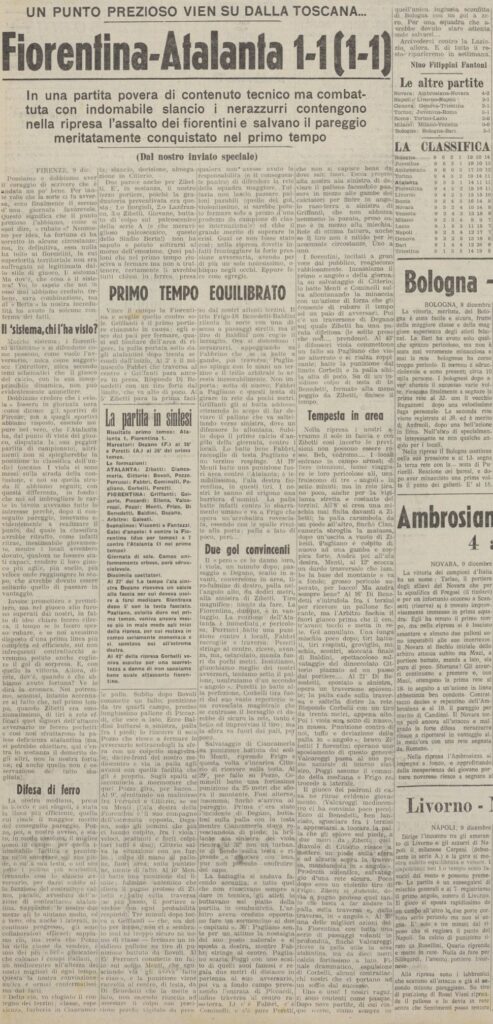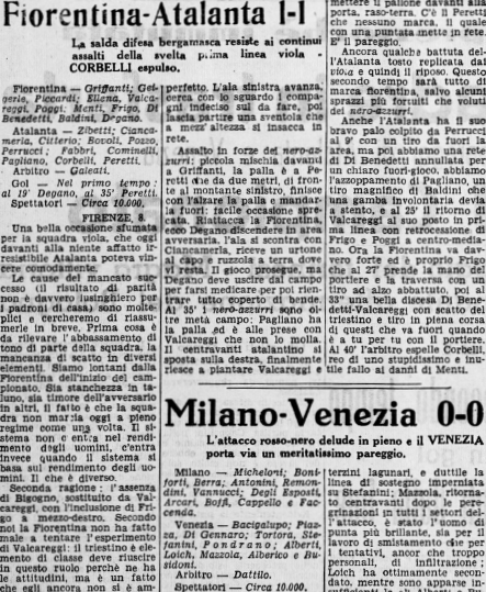 Finisce in parità, quarta partita utile consecutiva, nella Fiorentina gioca Valcareggi che diventerà poi venti anni dopo nostro allenatore e successivamente C.T. della Nazionale.
