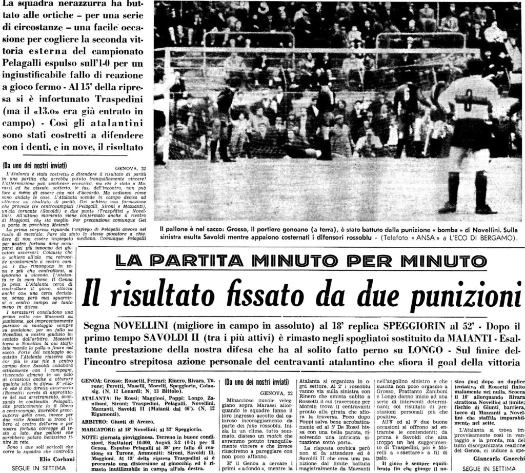 Violente critiche sia all’allenatore per il cambio inopportuno e soprattutto a Pelagalli per la stupida espulsione, addirittura atalantini presenti a Genova fermano i giornalisti bergamaschi fuori da Marassi per chiedere severi provvedimenti per Pelagalli.