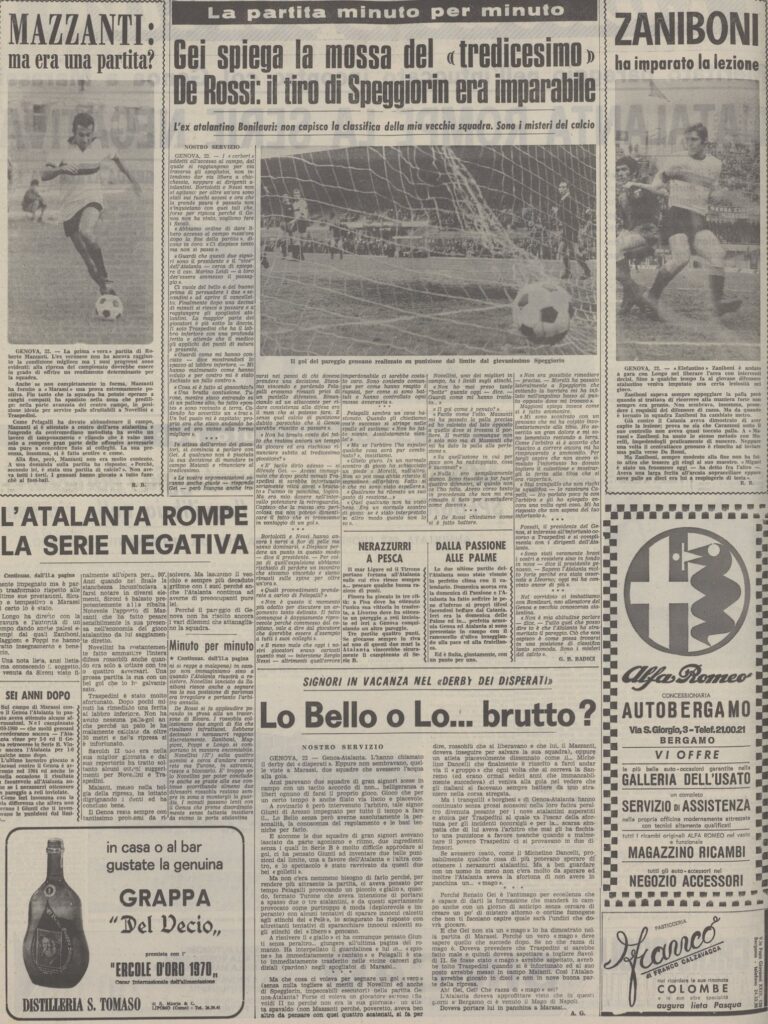Siamo nel brutto campionato 69/70, ci salveremo per differenza reti dalla Serie C, con il Genoa è uno scontro diretto ma loro in Serie C ci andranno davvero arrivando ultimi.