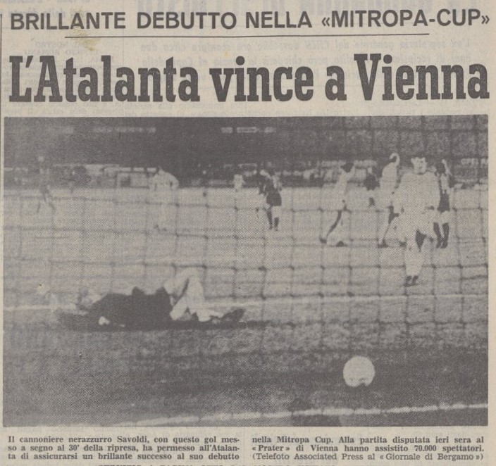 Dieci giorni dopo trasferta europea di Mitropa Cup contro l’Austria Vienna, a sorpresa vinciamo e il gol vittoria è ancora di bomber Savoldi, espugniamo il Prater davanti a 70.000 persone.