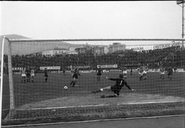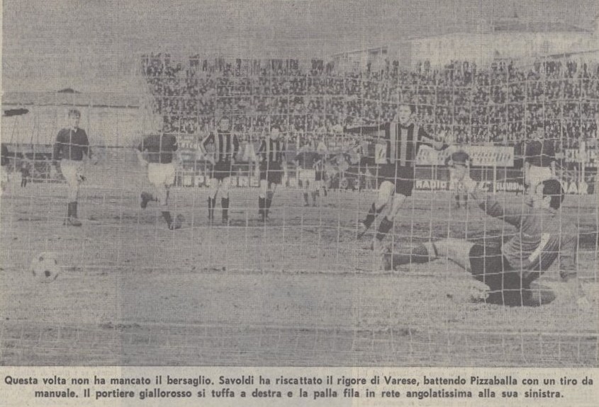 Dopo aver sbagliato un rigore a Varese Savoldi torna al gol dagli undici metri spiazzando l’ex atalantino Pizzaballa.