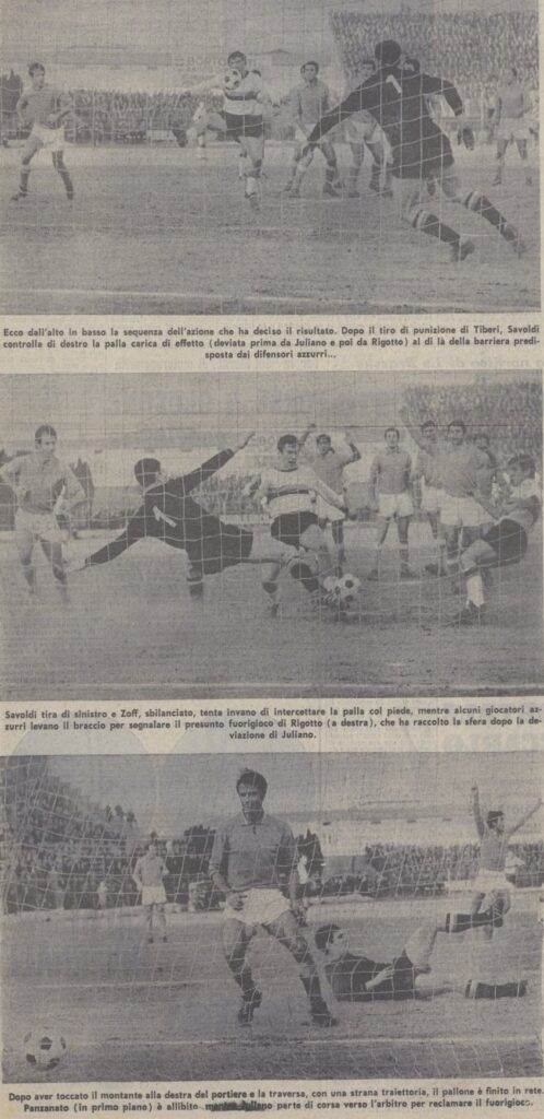 Inizia novembre e c’è proprio lo scontro diretto con il Torino, la squadra di Combin finisce 1-1 ma Savoldi va a segno su rigore e passa in testa da solo alla classifica cannonieri.