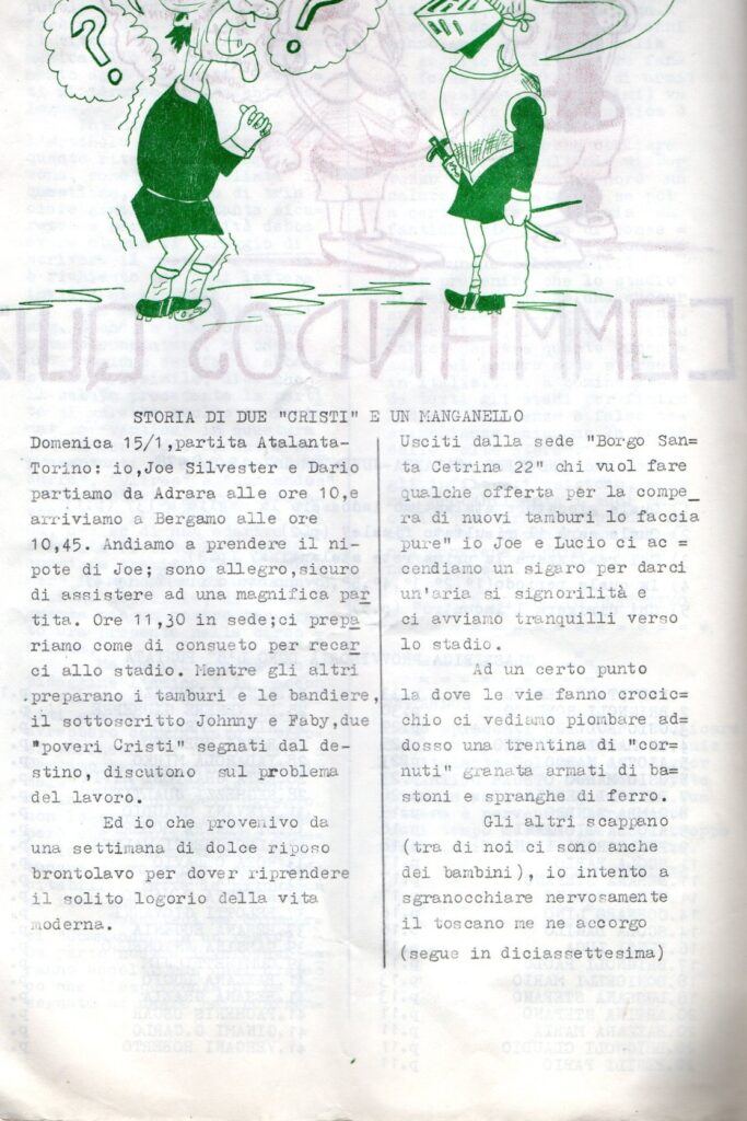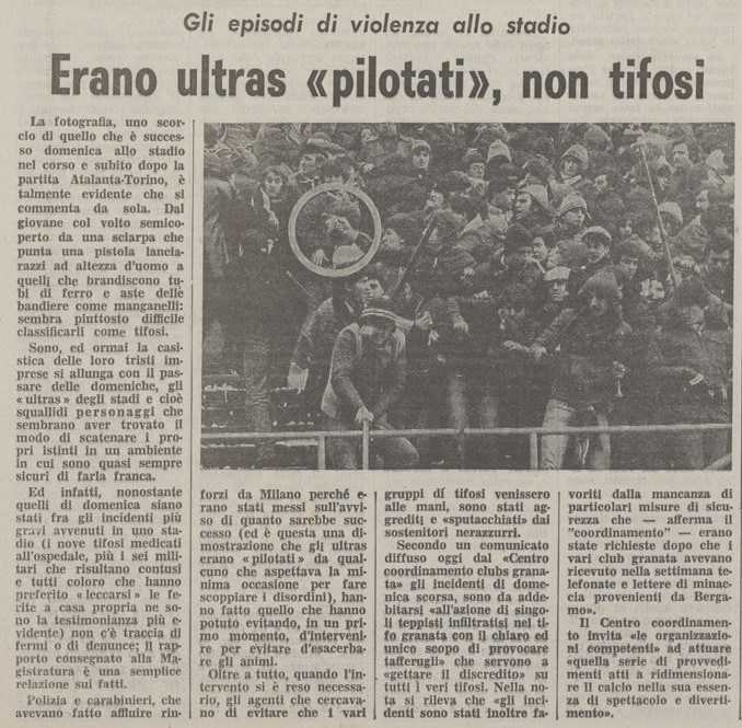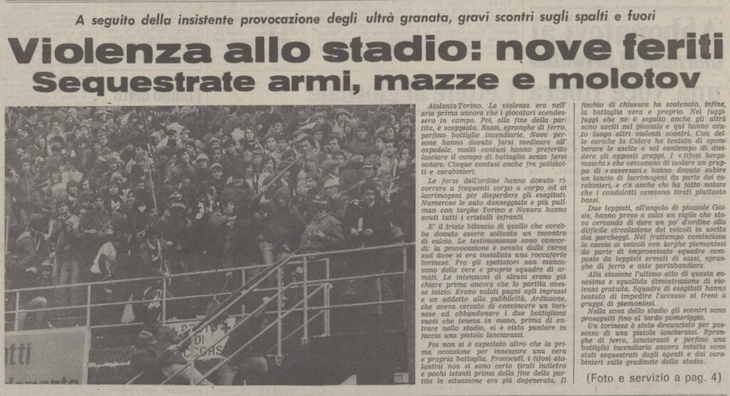 Gli storici scontri che hanno determinato la rivalità con i granata, i razzi lanciati dalla Sud alla Gradinata, la clamorosa rissa con spranghe ma anche ombrelli tra gli ultras granata e gli atalantini della Sud, magari non ultras all’epoca ma comunque gente alla quale non era salutare andare a rompere le balle, partono anche pensionati con l’ombrello.