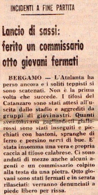 Dopo l’assurda sconfitta scatta la caccia al calabrese, d’altra parte i catanzaresi in Sud non si erano ben comportati con gli atalantini a loro vicini.