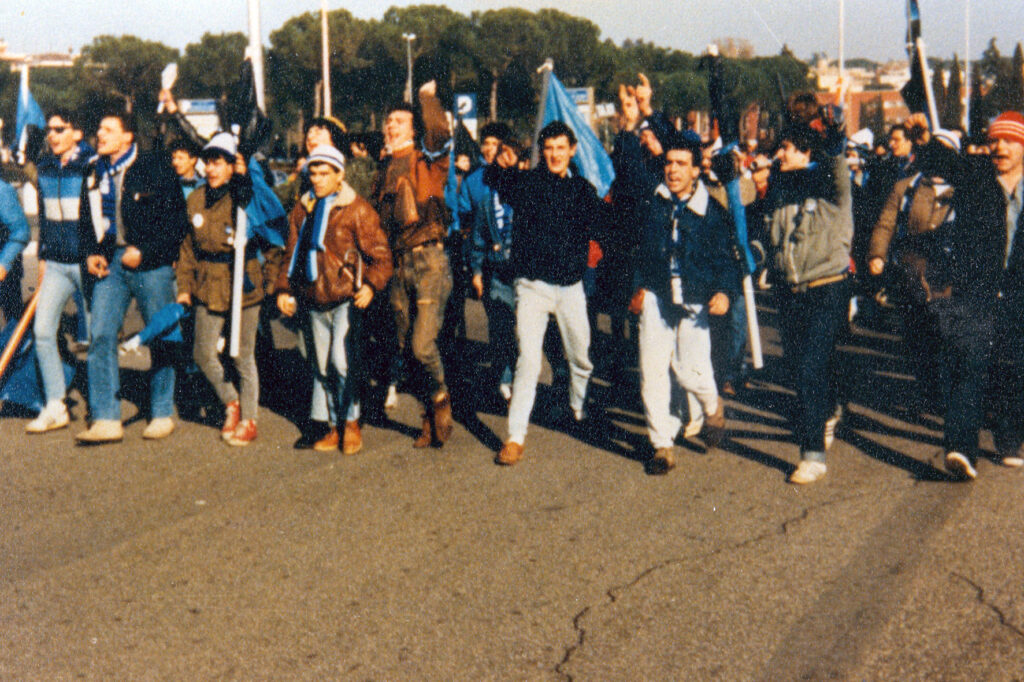 Circa duecento tra Brigate e Kaos si presentano a Roma dopo la rottura del gemellaggio dell’andata, arrivano perfino sotto la Sud romanista, poi vengono fatti entrare dalle forze dell’ordine e nel finale di partita reagiscono al brutto coro romanista sull’infortunato Malizia caricando con le cinghie, deve entrare la polizia per frenarli.