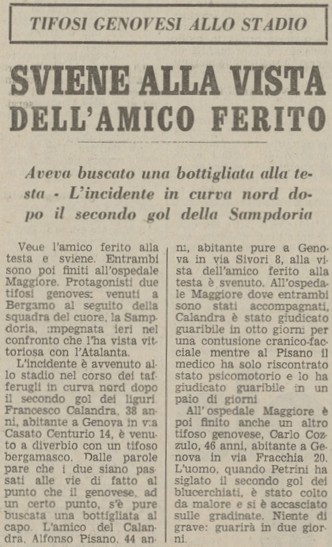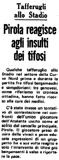 Il gemellaggio con i doriani è ancora al di là da venire, si concretizzerà solo nel 1976 quando i genovesi giocheranno a Bergamo due partite in campo neutro per la squalifica di Marassi.
