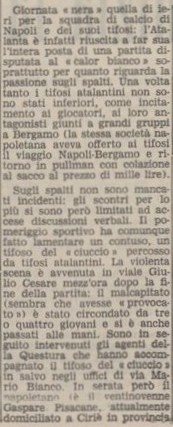 Da questo giorno il tifo ultras atalantino si identifica con la Curva Nord (anche se poi, molto più avanti, in Sud torneranno, tuttora presenti, diversi gruppi ultras).
