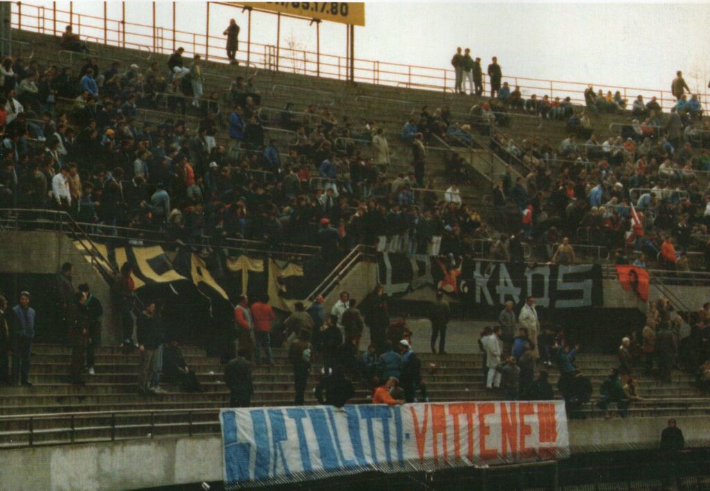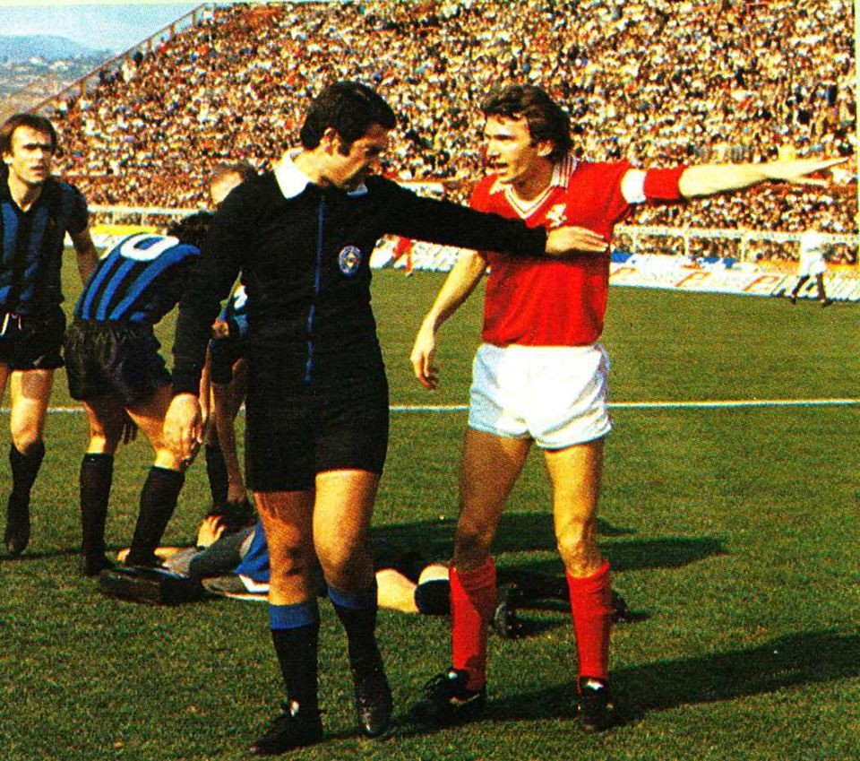Bodini esce sostituito da Pizzaballa, perdiamo 2-0 e la settimana dopo si scatena la polemica a livello nazionale, il Perugia è l’unica concorrente del Milan per lo scudetto, le foto dello striscione delle Brigate si diffondono.