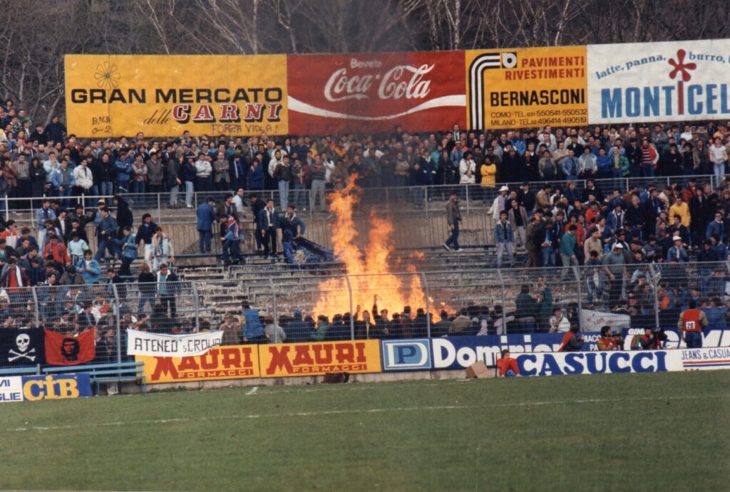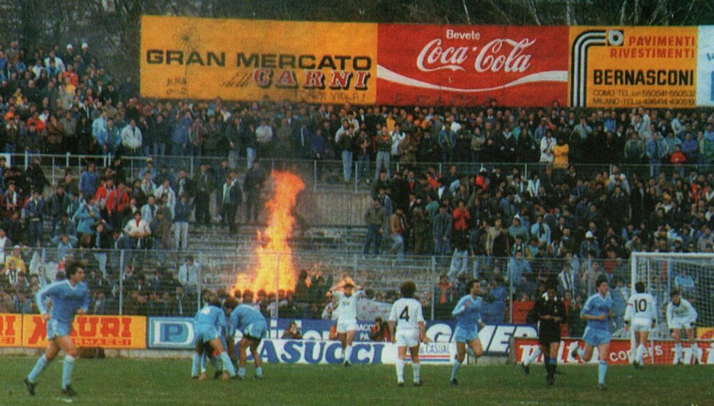 Proprio mentre segna il Como sotto la nostra curva scoppia un bell’incendio a causa di un mozzicone su tutta la carta lanciata all’ingresso in campo, il giudice sportivo la prende bene e ci squalifica il campo pensando al vandalismo.