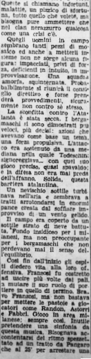 Si gioca sotto una fitta nevicata, ci annullano un gol ma Randon si procura un netto rigore per uno sgambetto in piena area, trasforma lo specialista Mari a metà primo tempo.