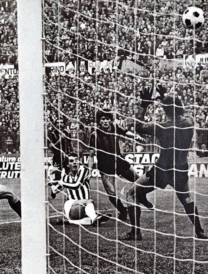 Lo tira la stessa ala con il numero sette, colpisce il Mastro di testa ostacolato, ne esce un lentissimo e tranquillissimo campanile che Zoff blocca in presa alta, ma incredibilmente la palla gli scappa, picchia sulla spalla di Libera che timidamente stava provando a ostacolarlo e finisce in rete sotto la Maratona, dove un migliaio di atalantini esulta tra la totale incredulità del resto dello stadio.