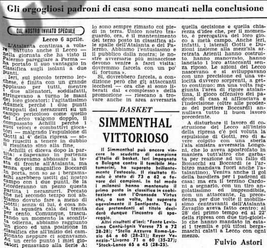 Passiamo in riva al lago in uno scontro diretto, il Lecco sarà terzo e primo delle non promosse, risolve una doppietta di Gianni Zavaglio, un gol a metà di entrambe le frazioni di gioco.