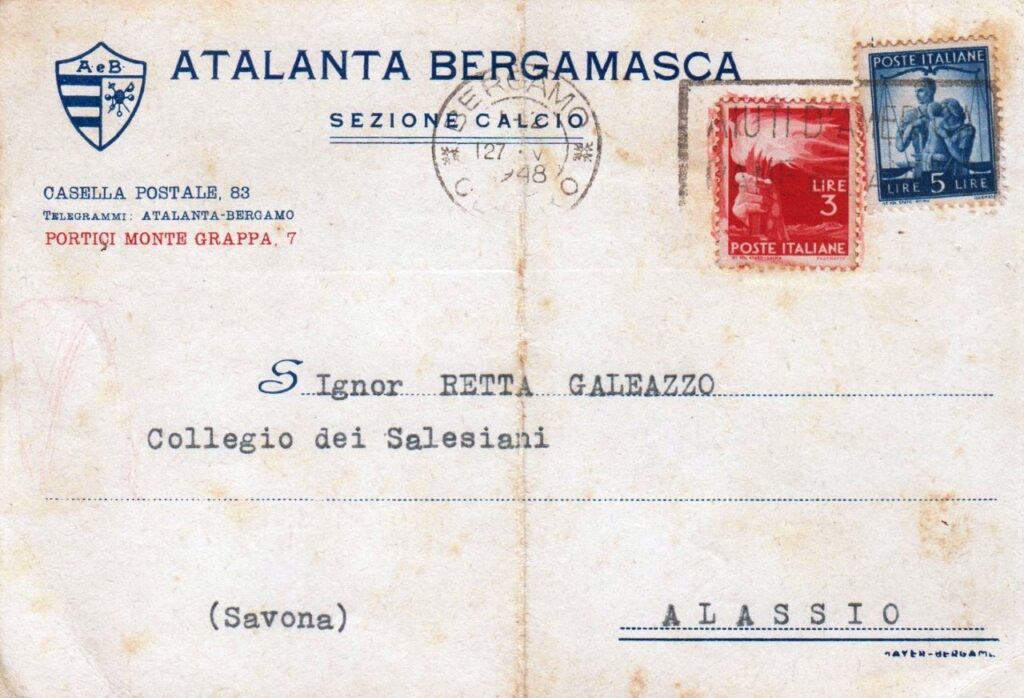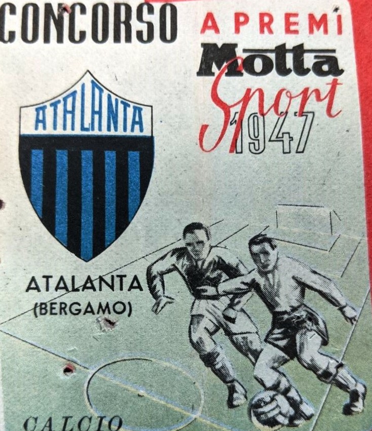 Qui è tutto molto chiaro, siamo nel 1957, si festeggia il cinquantenario dell’Atalanta, la medaglietta ricordo porta un logo, ancora diverso.