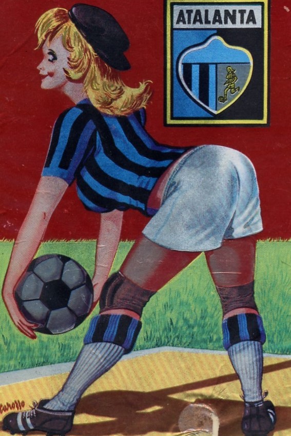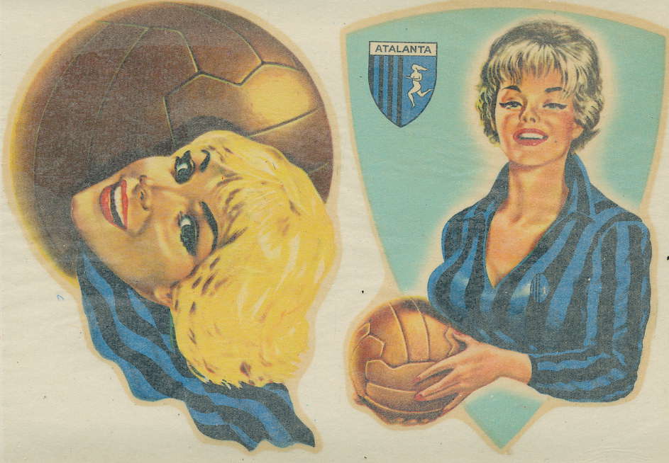 In questa decalcomania c’è una Dea bionda ma più che altro pin-up, non fa testo perché fa parte di una serie dedicata a tutte le squadre della massima serie, immagini uguali per tutte cambiano solo maglia logo e colori; certo nel nostro caso ha qualche somiglianza con la rappresentazione che ne viene fatta di solito.
