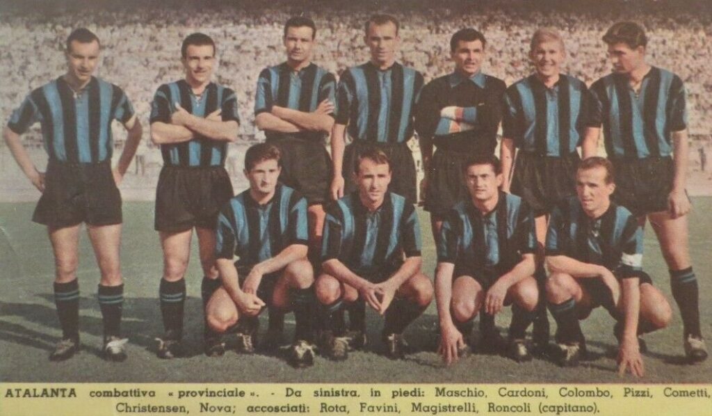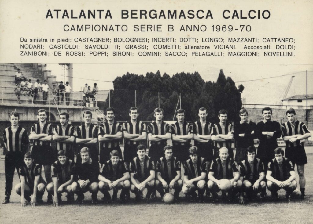 Atalanta-Reggina del febbraio 1970 è inverno e la maglia è a girocollo.