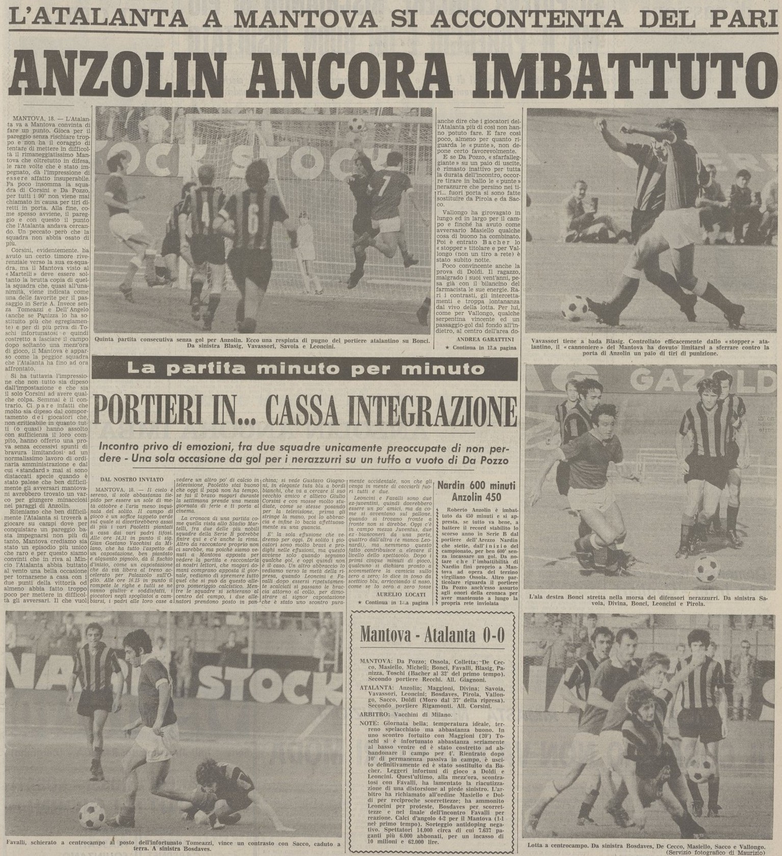 Certo l’occasione più grossa è nostra, un semplice cross rasoterra sul quale il portiere mantovano sbaglia l’uscita, la palla passa davanti alla linea di porta e nessuno riesce a deviarla dentro, nemmeno Bosdaves che l’atalantino più vicino, stop fine delle note di cronaca.