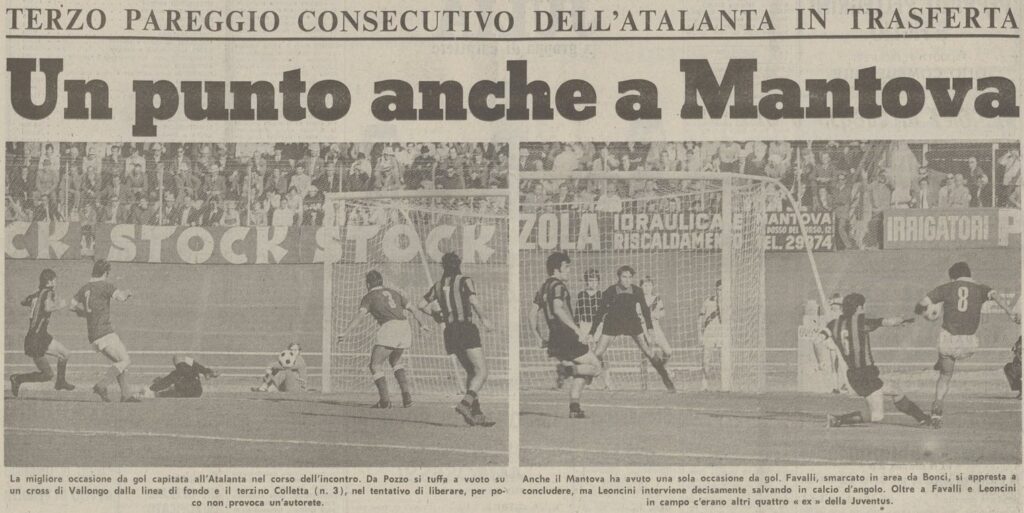 Certo il Mantova ha assenze importanti a centrocampo (come il nostro ex capitano Dell’Angelo, in campo invece con il numero sette il futuro atalantino Bonci) ma non riusciamo ad approfittarne del tutto anche se comunque un punto è un buon risultato, prosegue la corsa di testa.