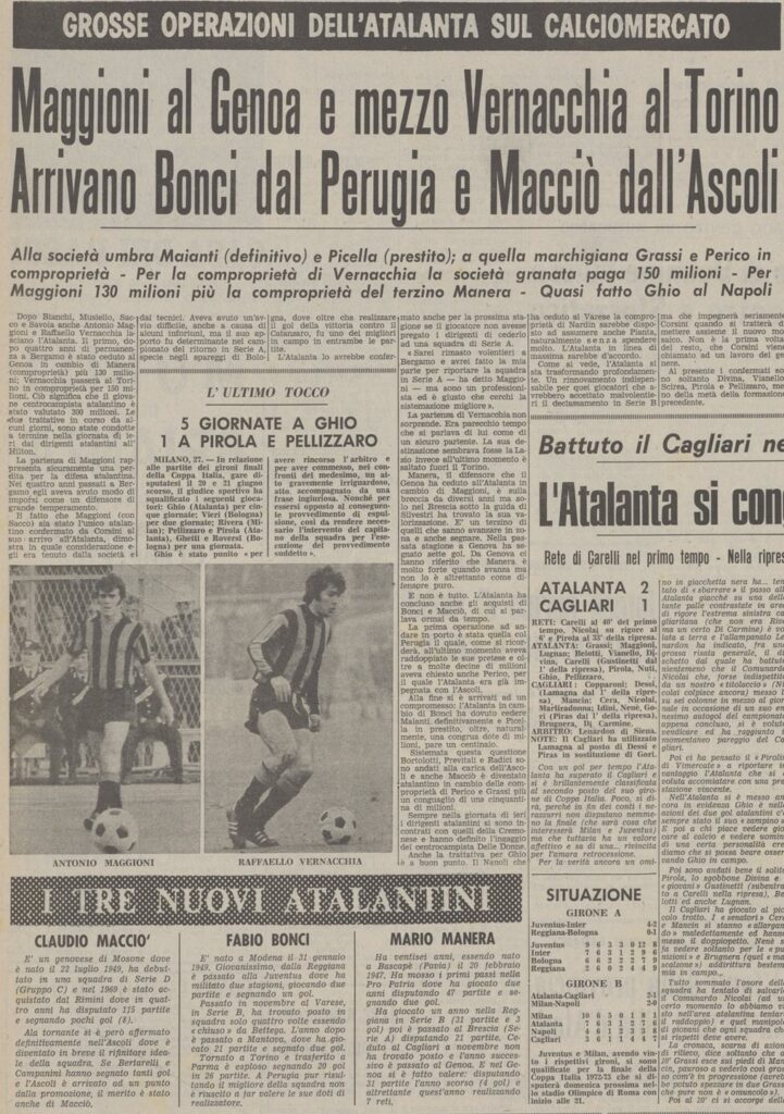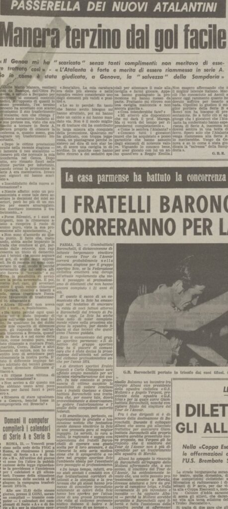 Arriva a Bergamo nell’estate del 1973, siamo appena malamente retrocessi e il nostro terzino Maggioni va al Genoa in Serie A in cambio di 130 milioni più appunto la comproprietà di Manera, l’altra metà è del Brescia.