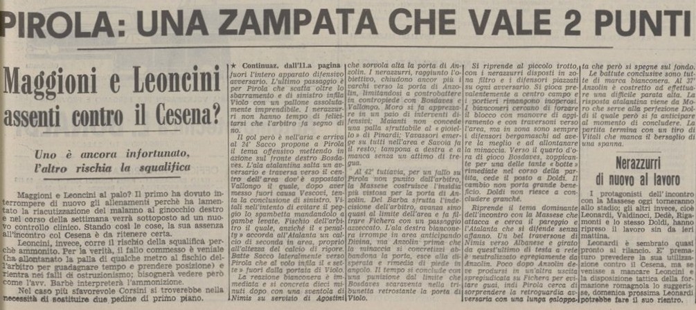 A metà primo tempo il gol arriva davvero, Vallongo viene sgambettato in piena area, l’arbitro inspiegabilmente concede un calcio a due sul dischetto del rigore invece che il rigore stesso, tocca Sacco per Pirola che segna ugualmente.