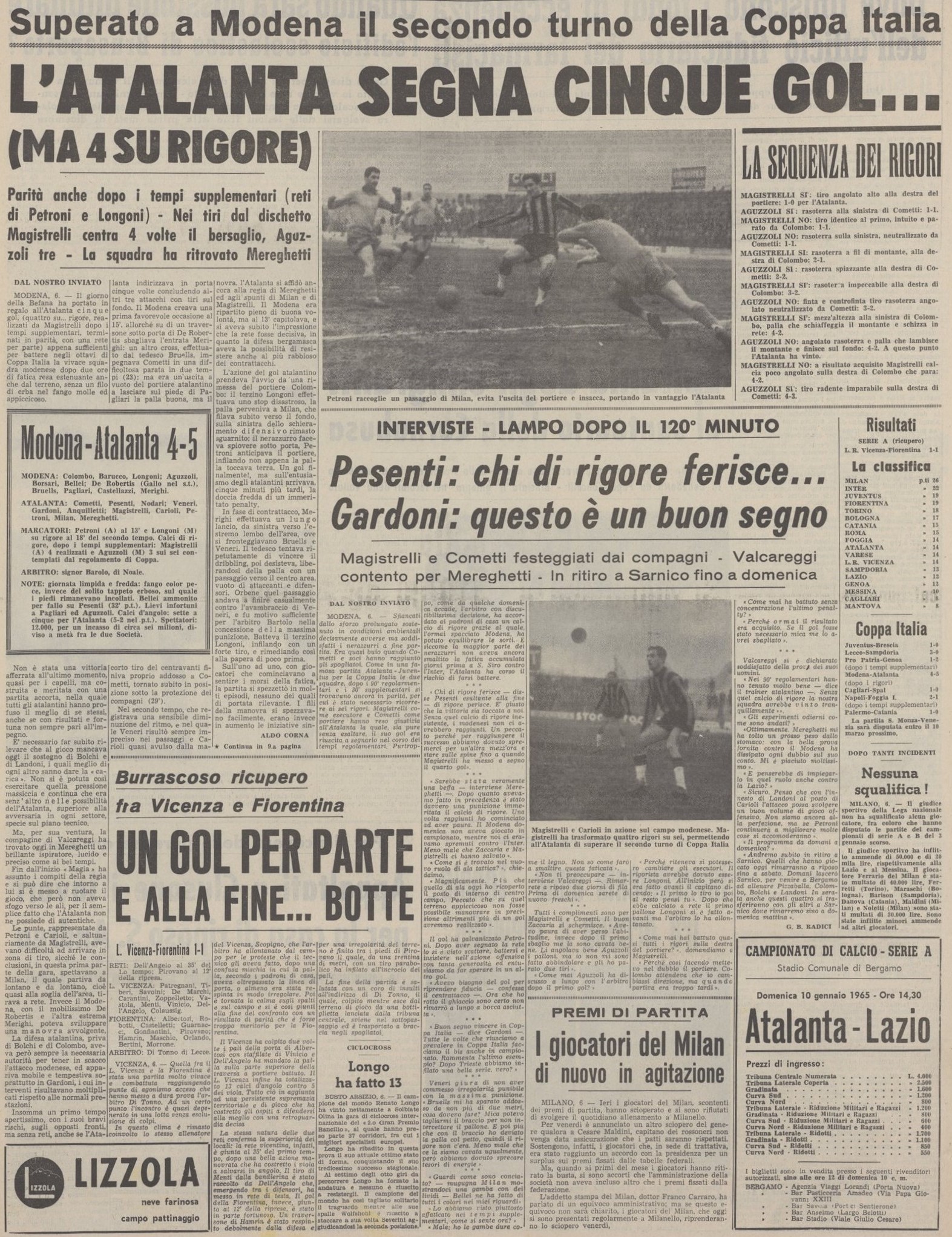Andiamo sul campo dei canarini che militano in Serie B e soffriamo per passare il turno, Petroni ci porta in vantaggio quando manca mezzora al termine, cross di Milan e il centravanti atalantino anticipa il portiere toccando al volo in porta.