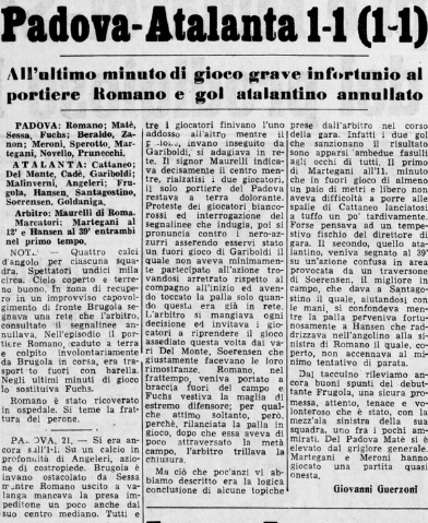 In effetti in rimonta l’avremmo pure vinta ma lo vedremo, dopo, i due gol sono probabilmente entrambi irregolari, prima segna il Padova in fuorigioco così clamoroso che tutti si fermano poi pareggia Svend Hansen segna a fine primo tempo dopo un controllo di mani del compagno Santagostino.