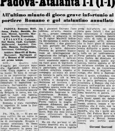 In effetti in rimonta l’avremmo pure vinta ma lo vedremo, dopo, i due gol sono probabilmente entrambi irregolari, prima segna il Padova in fuorigioco così clamoroso che tutti si fermano poi pareggia Svend Hansen segna a fine primo tempo dopo un controllo di mani del compagno Santagostino.