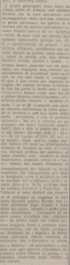 Si ha qualche notizia in più sulla partita solo qualche giorno dopo, la squadra rimane al Sud per giocare la domenica successiva a Salerno, si coglie l’occasione per giocare l’amichevole di Taranto prevista nel contratto per l’acquisto di Perrucci dai pugliesi (amichevole poi vinta 2-0).
