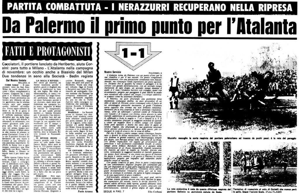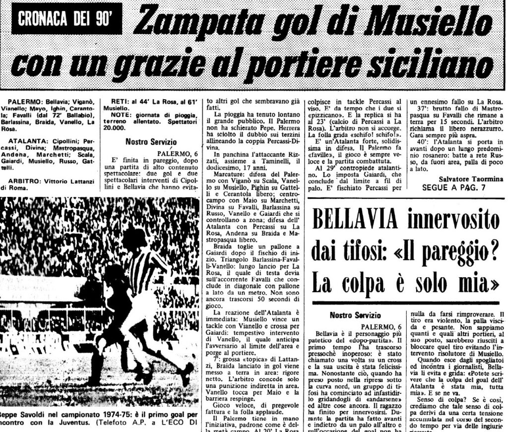 I due gol arrivano entrambi in seguito a calci di punizione, all’ultimo minuto del primo tempo segna il Palermo, La Rosa si libera di Percassi forse con una gomitata e devia in rete.