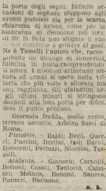 Probabilmente la ragione o molta di essa è dalla parte del Pesenti visti i risultati, oltretutto la Pistoiese sarà l’unica squadra ad arrivare sotto di noi in classifica, loro ultimi e noi penultimi entrambi retrocessi.