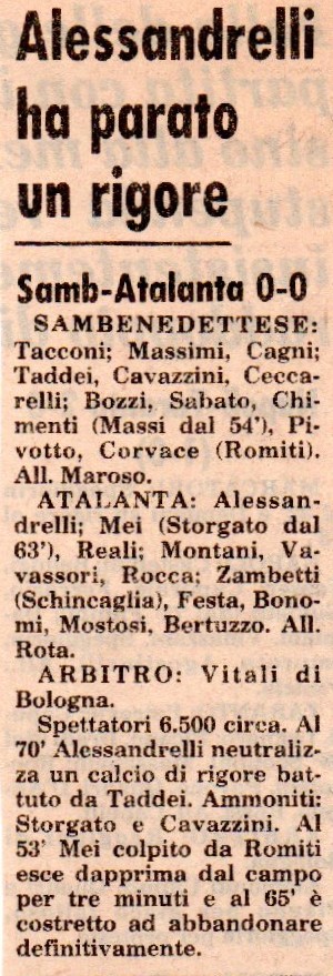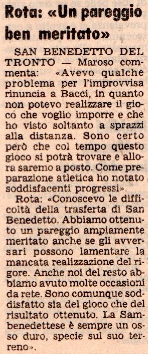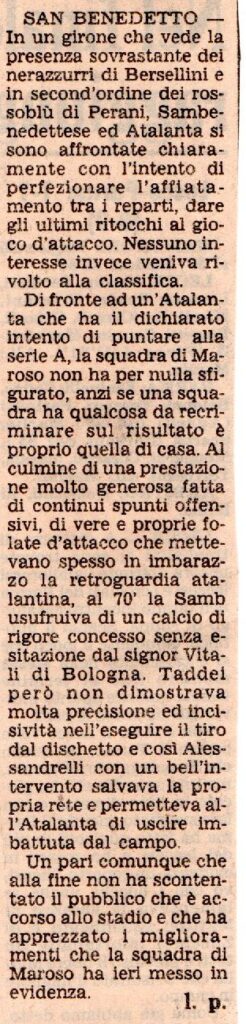 La Samb ha in porta un giovane Stefano Tacconi che non è comunque particolarmente impegnato, in compenso Alessandrelli deve parare un rigore per portare a casa il pareggio, finisce 0-0.
