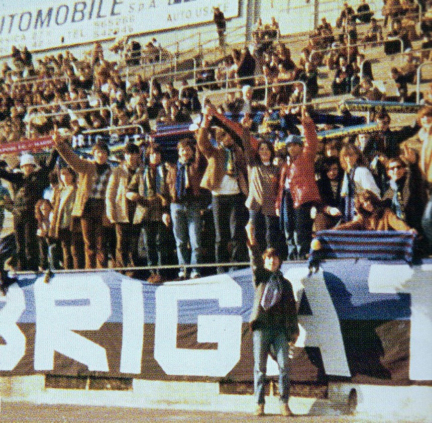 Il nostro settore, semplicemente la Nord di Marassi, foto che testimonia pure la mia presenza e quella dell’amico Antonino Nicosia, seduti prima della partita in alto a destra.