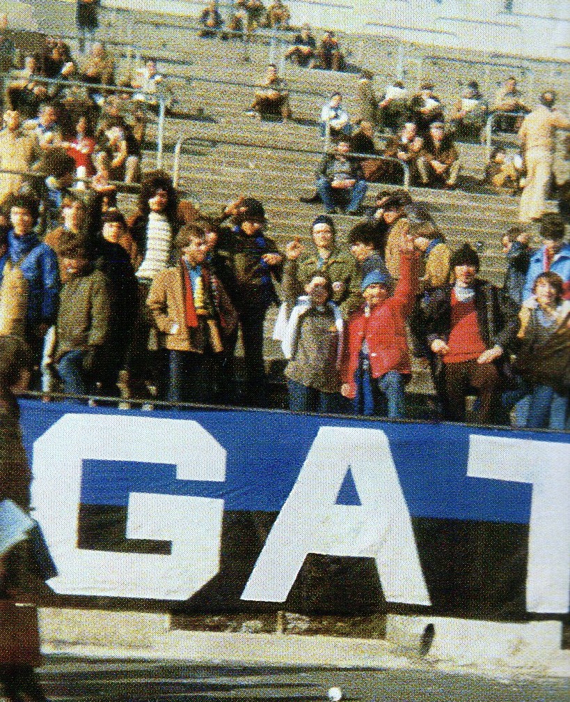 In tutto questo c’è anche la partita, andiamo in vantaggio quando manca mezzora al termine, il gol è segnato proprio davanti a noi, sul cross il portiere in uscita (che poi è Garella) centra in pieno i suoi difensori, tutti e tre rimangono a terra e Garritano può segnare tranquillamente a porta vuota.