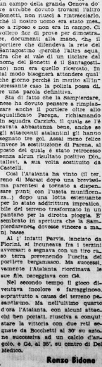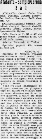 A Bergamo nell’andata con la Sampierdarenese, non per nulla i genovesi arriveranno ultimissimi, fortunatamente non esistono retrocessioni, anche se è comunque il loro ultimo campionato, si fonderanno con l’Andrea Doria formando la Sampdoria.