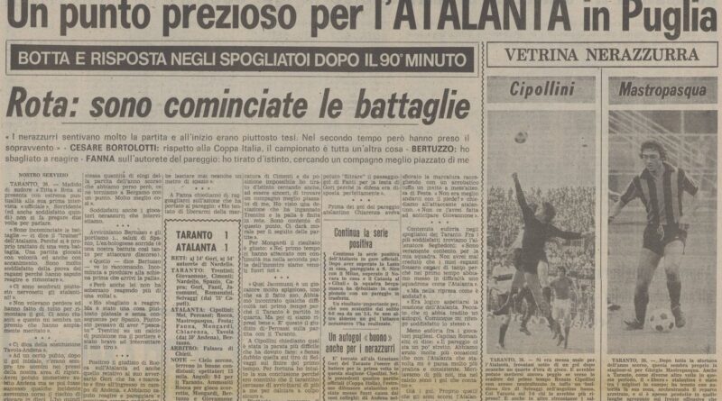 Leggi tuttoPrima giornata del mitico campionato 76/77, pareggiamo con difficoltà a Taranto, prendiamo gol dopo un quarto d’ora, l’attuale presidente Percassi si perde l’uomo che segna di testa.