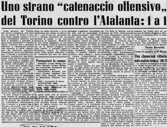 Siamo sempre nel lunghissimo periodo negativo senza vittorie (da dicembre 1954 ad aprile 1955), questo è un buon pareggio al Filadelfia di Torino.