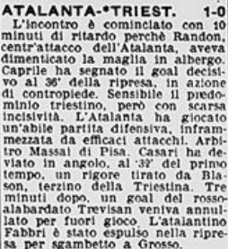 A Trieste scontro diretto per la parte sinistra della classifica, si comincia con dieci minuti di ritardo perchè il nostro attaccante Randon ha dimenticato la maglia in albergo, eh si, medioevo calcistico.