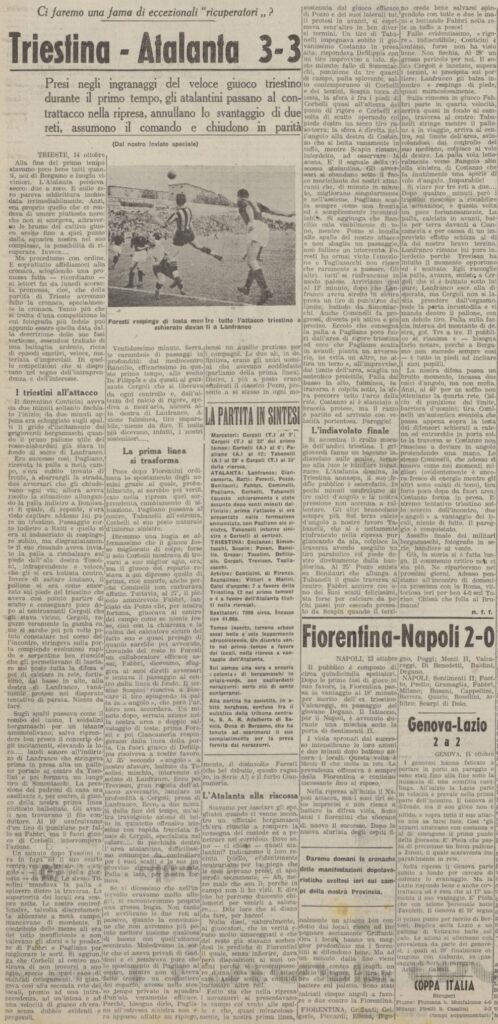 Il giornalista naturalmente non riferisce ai giocatori che sono tutti presi dai consigli dell’allenatore Fiorentini che li spinge all’attacco, non importano più le consueguenze.