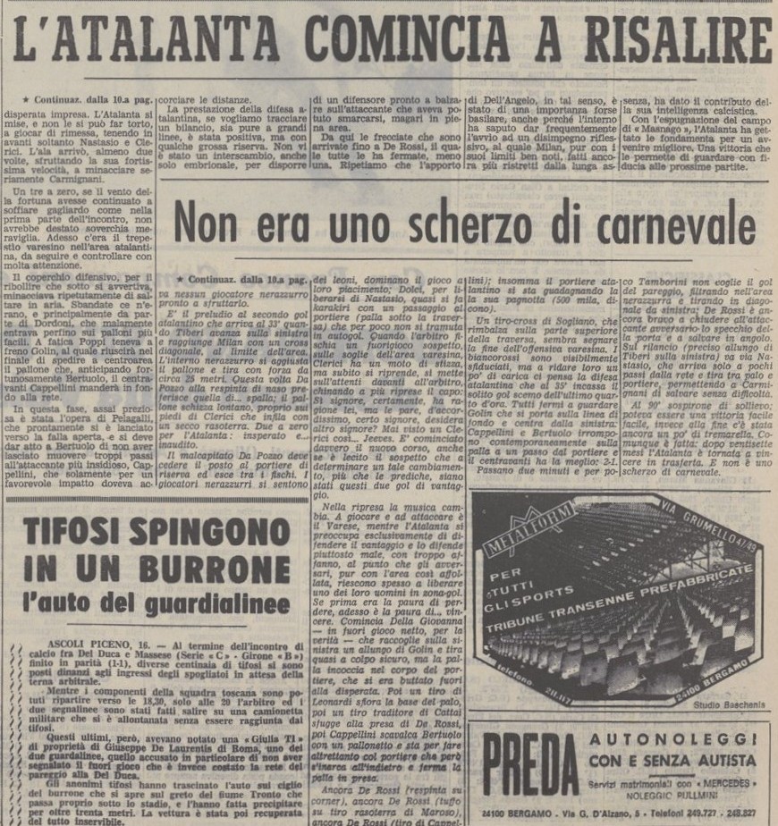 Prima e unica vittoria in trasferta del disastroso campionato 68/69, d’altra parte finora abbiamo segnato tre gol in nove partite esterne.