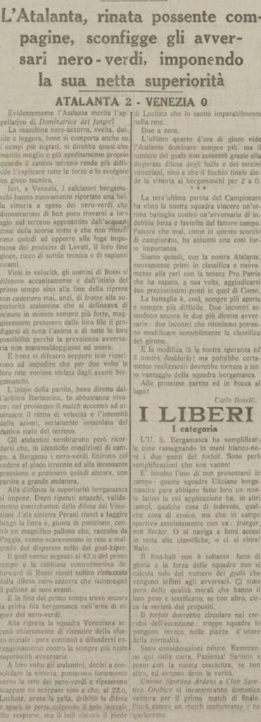 In effetti ci troviamo meglio con questo terreno, anche all’andata a Bergamo avevamo vinto con un campo pesante, a fine primo tempo Perani crossa e Poggia segna al volo il gol del vantaggio.
